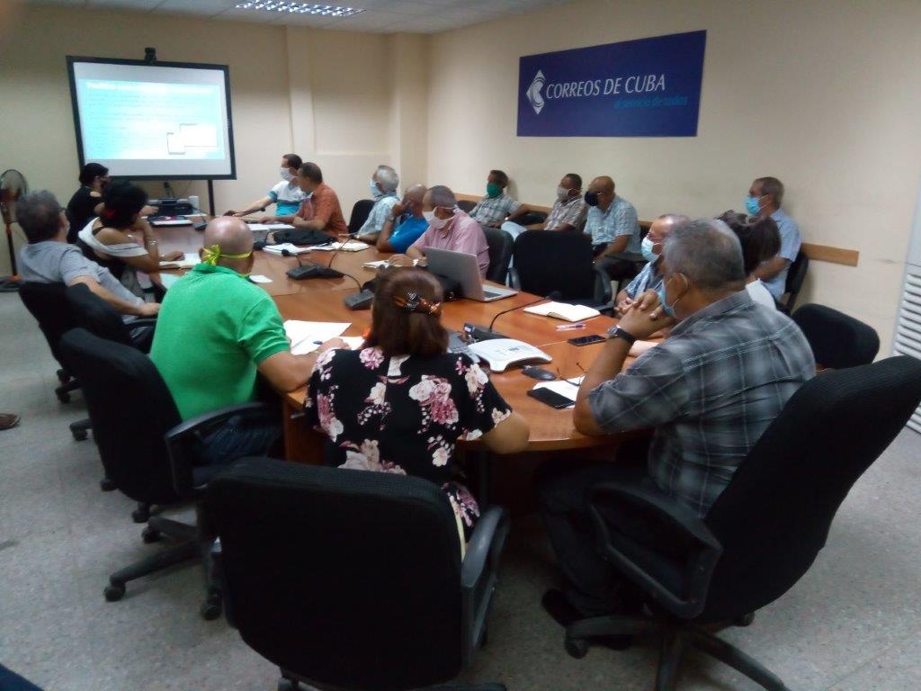 Con la presencia de la viceministra del Ministerio de Comunicaciones, Ana Julia Marine López; la jefa del Departamento de Servicios Postales de ese organismo, Meilán Weng Peña; y Alba Estébanez Novo, miembro del Secretariado del Sindicato Nacional de Trabajadores de las Comunicaciones, el presidente de Correos de Cuba, Carlos Asencio Valerino, chequeó el pasado martes 4 de agosto, junto a los miembros de su Consejo de Dirección, las tareas que corresponden a este Grupo Empresarial dentro del plan de acciones que implementará el MINCOM para dar cumplimiento a la Estrategia Económica y Social aprobada recientemente por el Gobierno cubano para impulsar la economía nacional y enfrentar la crisis mundial provocada por la Covid-19.