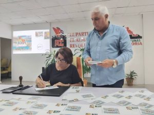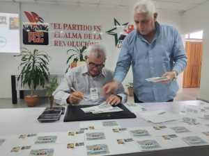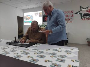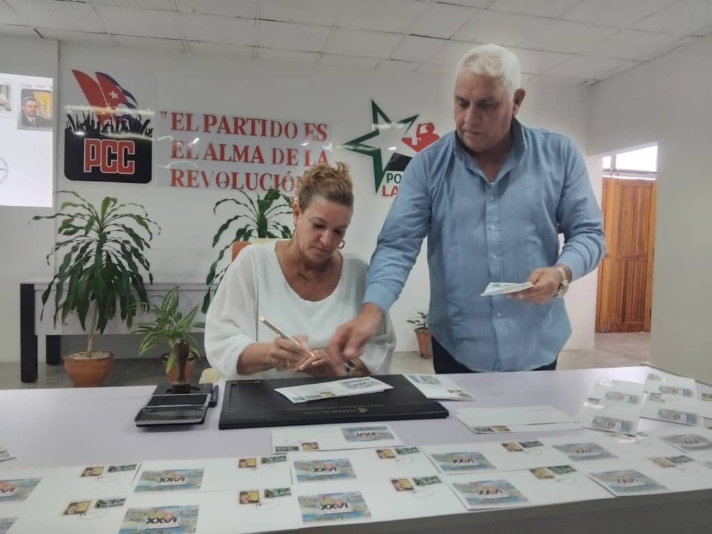Presidieron la ceremonia y efectuaron la cancelación, Osbel Lorenzo Rodríguez Primer Secretario del Partido en la Provincia, Yelenys Tornet Menéndez Gobernadora Provincial, Naima Ariatne Trujillo Barreto Ministra de Educación, Luis González Pedré y David Lahera Rodríguez funcionarios del Comité Central del Partido, Douglas Leyva López Presidente del Grupo Empresarial Correos de Cuba y Jorge Luis Aneiros Alonso Presidente Nacional de la UNHIC, Rafaela Martínez Collazo Presidenta de la Filial de la UNHIC en Las Tunas, Dra. Francisca López Civeira. Premio Nacional de Historia, Pedro Pablo Rodríguez López. Premio Nacional de Historia, Dr. Israel Escalona Chadez Premio Nacional de Historia.