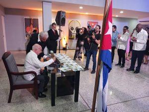 Estamparon su rúbrica en la estampilla que perpetuará la fecha, el vicepresidente Salvador Valdés Mesa, el primer Secretario del Partido de la provincia, Edelso Antonio Ramos Linares, el gobernador Manuel Aguiar Lamas, el viceministro del Ministerio de Comunicaciones Pablo Julio Pla Feria, el vicepresidente de Correos de Cuba Ariel Santana y el comandante del Ejército Rebelde José Ramón Machado Ventura, en ese orden.