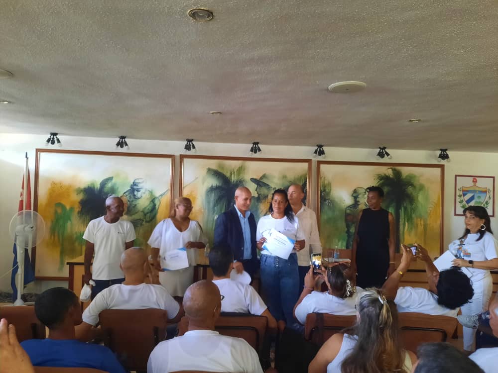 La Asamblea de Balance Anual de la Empresa de Correos Guantánamo, contó con la presencia de Douglas Leyva presidente del GECC, Irna Coello miembro de Buró del PCC Provincial, Mileidi Coba secretaria provincial del Sindicato de las Comunicaciones y Juan R. Pérez director general de la Empresa, trabajadores destacados de las UBC y sus directores.